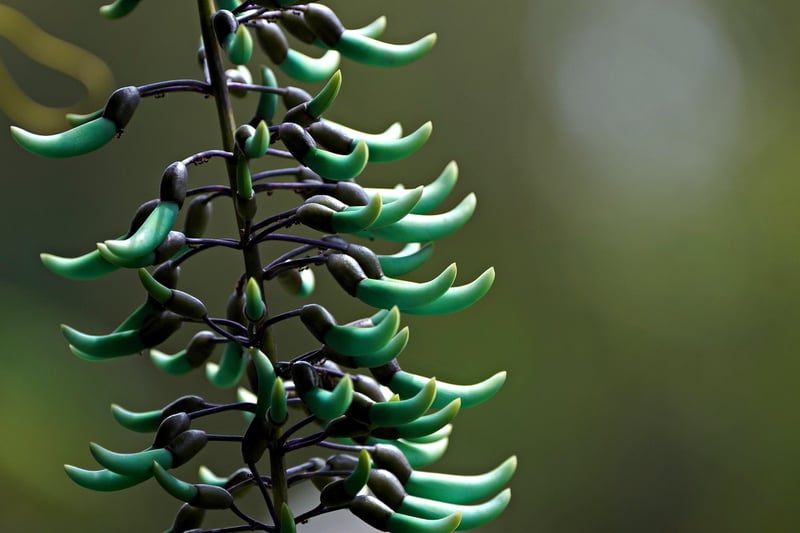 Behold the vibrant turquoise blooms of the Jade Vine, a rare plant native to the Philippines. Its cascading flowers are a sight to behold, making it a prized gem among plant enthusiasts.